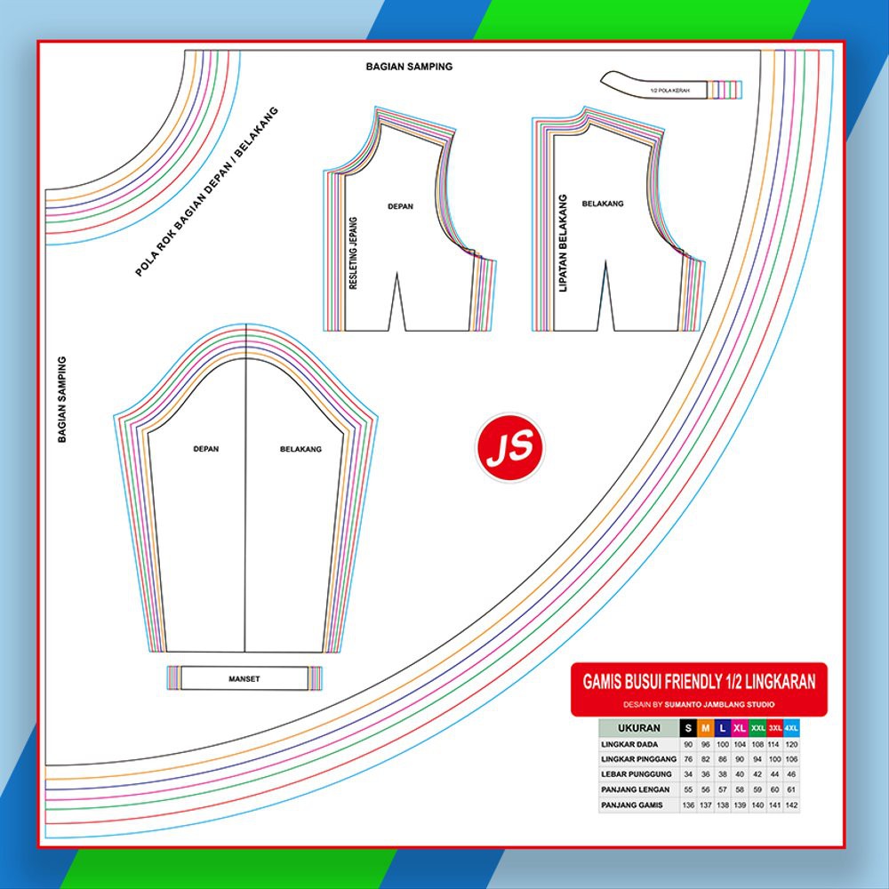 Selamat berjumpa kembali, setelah kemarin saya memberikan gambar pola rok satu lingkaran penuh atau di sebut juga dengan rok payung, maka untuk postingan kali ini saya akan memberikan gambar pola rok setengah lingkaran.